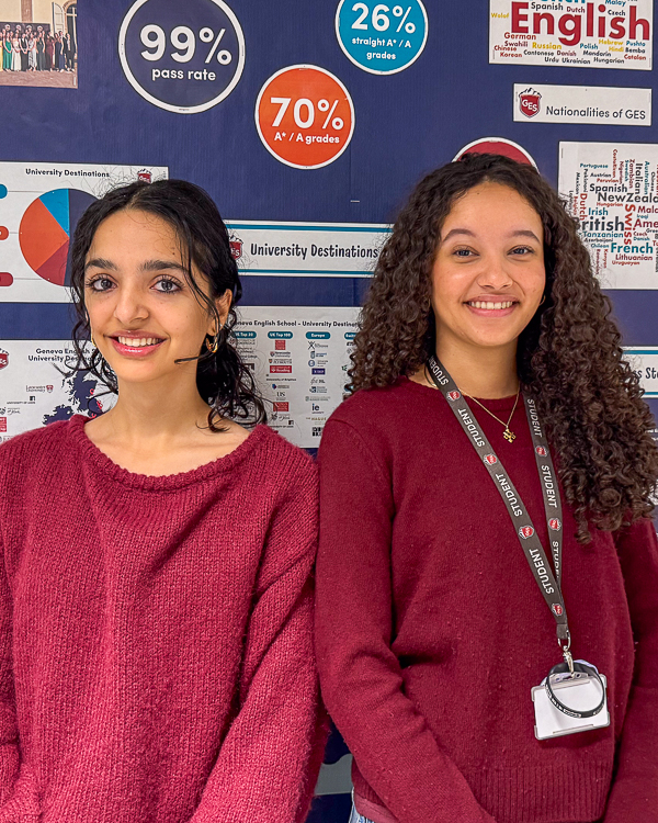 Nia and Mitra in Year 12 received a Pearson Outstanding Learner Award. Mitra scored the highest mark in Europe in GCSE Mathematics and the highest mark in Switzerland in IGCSE History, while Nia received the highest mark in Switzerland for IGCSE Geography.