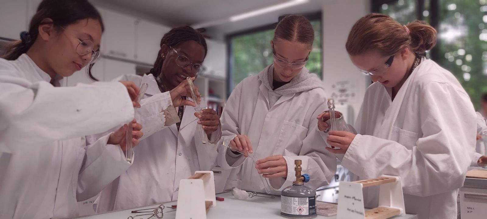 In Year 8, our scientists performed a compound testing experiment. Using various solvents to observe reactivity and carrying out flame tests to identify metal ions, they were able to test their properties and determine which compound they were dealing with.