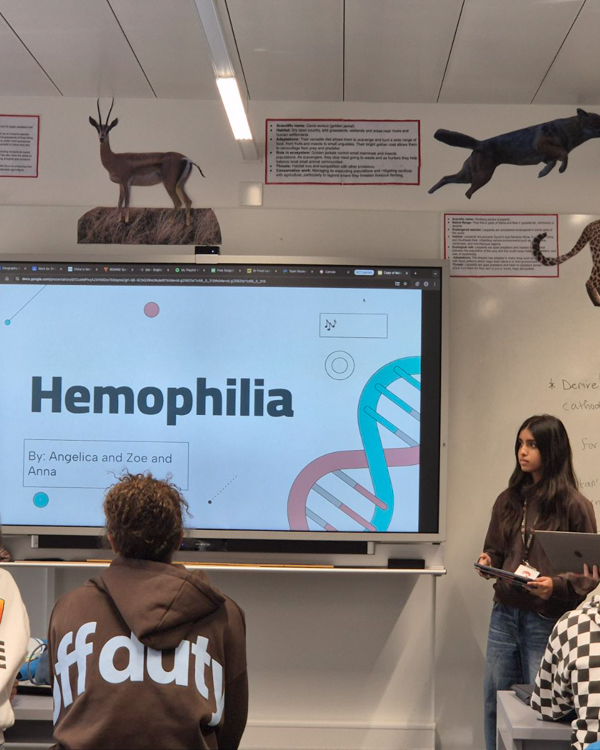 Our Year 9 biologists delivered some excellent presentations this week about different genetic diseases. Having carefully researched each of their presentation topics, with a particular focus on the biological mechanism behind each illness, our students did a terrific job at educating their peers on such afflictions as sickle cell disease or haemophilia. Well done to all of them for all their hard work, careful research and clear presentations.