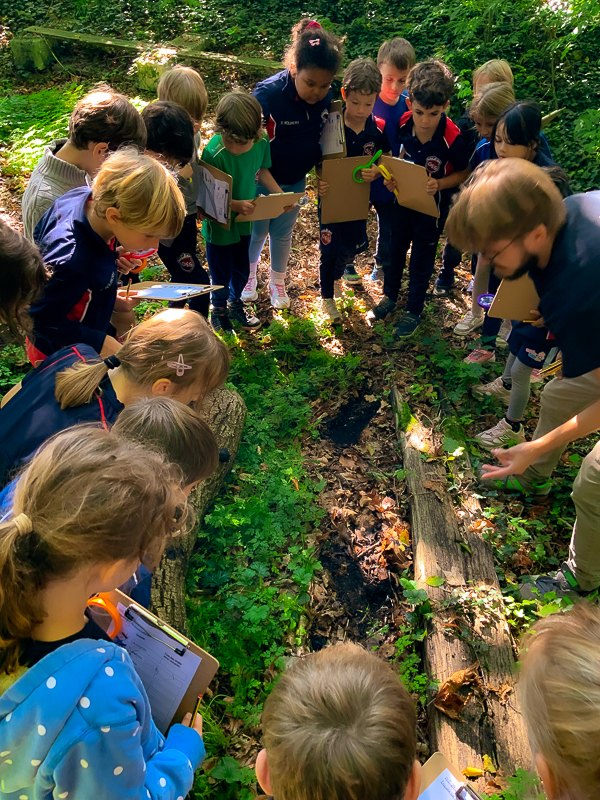 Our Year 2 scientists took advantage of the fair weather to have their Science lesson in their outdoor classroom this week. They conducted their an investigation in French to uncover micro habitats. Using a magnifying glass (or “loupe“), they found and named the many insects they spotted: les vers de terre, les abeilles, les fourmis et les araignées.