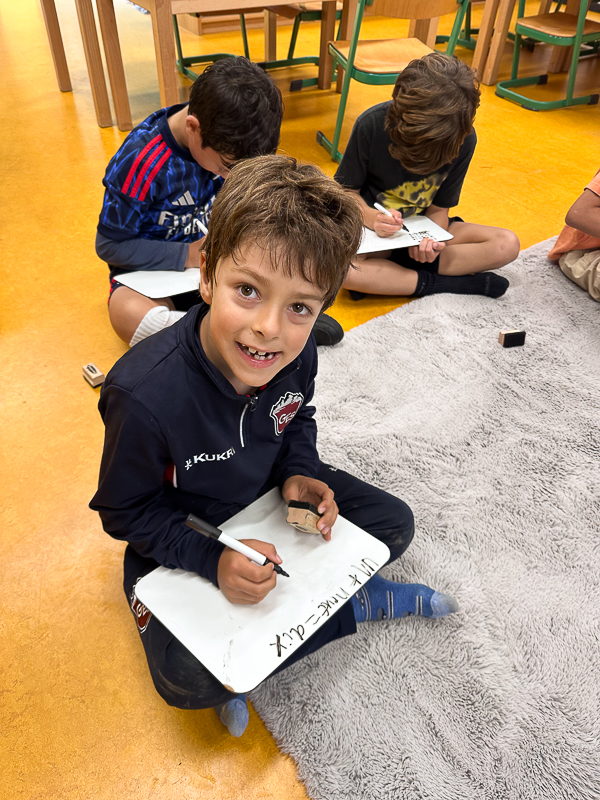 Our Year 3 and 4 students thoroughly enjoyed practising French grammar through movement activities this week! Focusing on identifying the gender of nouns linked to “le matériel scolaire” and on making sure colour adjectives agree with the masculine or feminine noun, students were tasked with selecting an image with a noun and running to find the matching adjective card. To support differentiation, some cards included a determinant to help with identifying the gender, while others required learners to rely on their prior knowledge with no determinant. For our more advanced learners, there were additional cards with random nouns beyond the theme of “le matériel scolaire“.